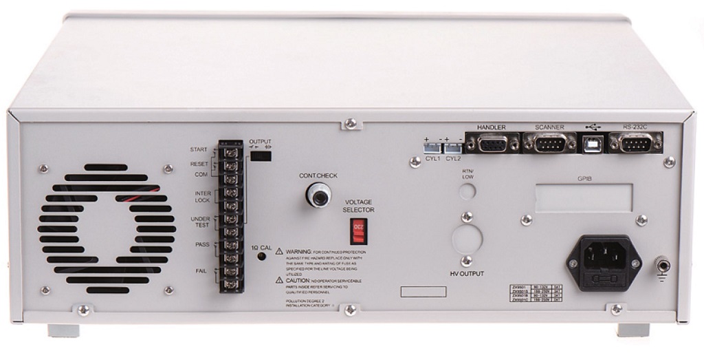 ZX9501絕緣耐壓測試儀可廣泛應用于電子元器件、家用電器、變壓器、儀器儀表、照明電器、電動工具、電熱器計算機、信息類整機的安規(guī)綜合測試儀。該系列儀器配備PLC接口、RS232C,并可選配RS485接口、USB device、USB Host、GPIB(選件),可方便地與PC進行數(shù)據(jù)通訊和遠程控制,以組建自動測試系統(tǒng)。