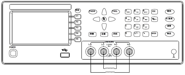 儀器一共四個(gè)測(cè)試端,從左到右依次為:Lcur,Lpot,Hpot,Hcur