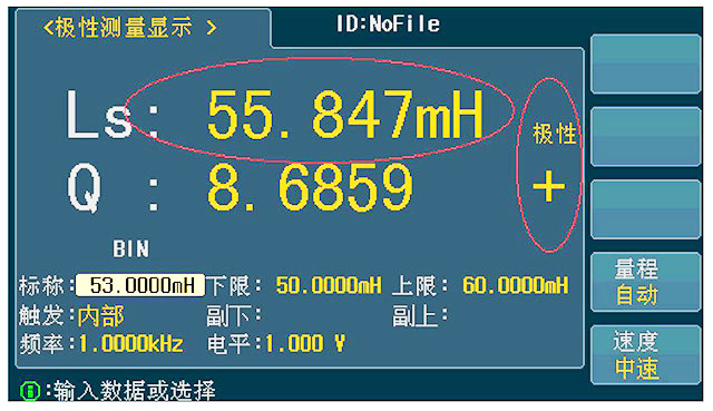 在極性測(cè)量界面,可設(shè)定:標(biāo)稱值,Ls 下限值,Ls 上限值,Q 下限值,Q 上限值,